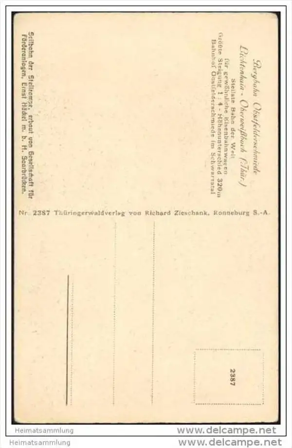 Die Bergbahn im Oberen Schwarzatal - Bahnhof Obstfelderschmiede 30er Jahre - Verlag Rich. Zieschank Ronneburg (E5264)