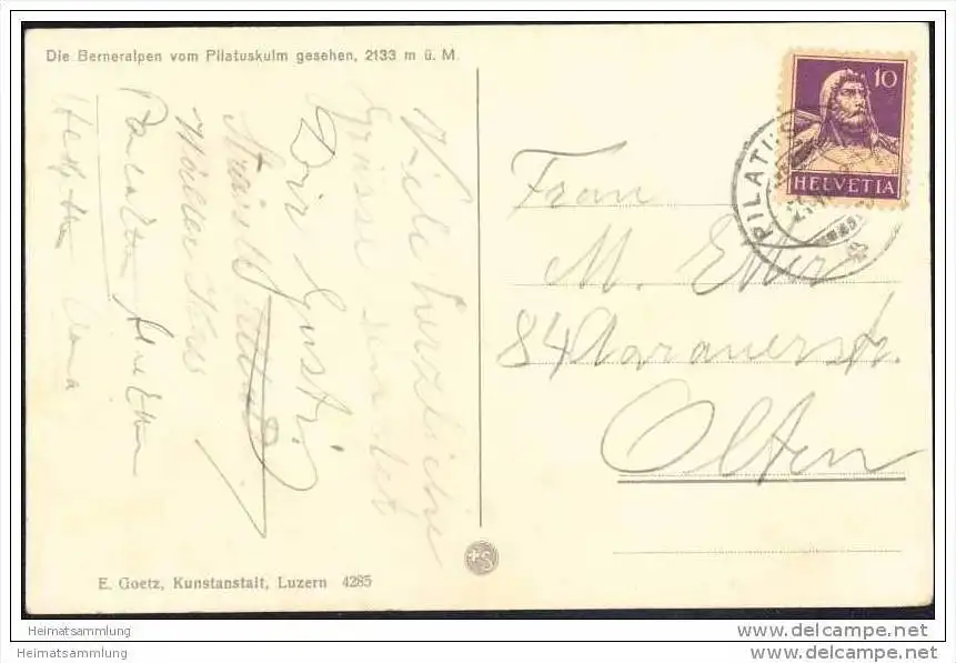 Die Berneralpen vom Pilatuskulm gesehen - Verlag E. Goetz Luzern (E4029) gel. 1913