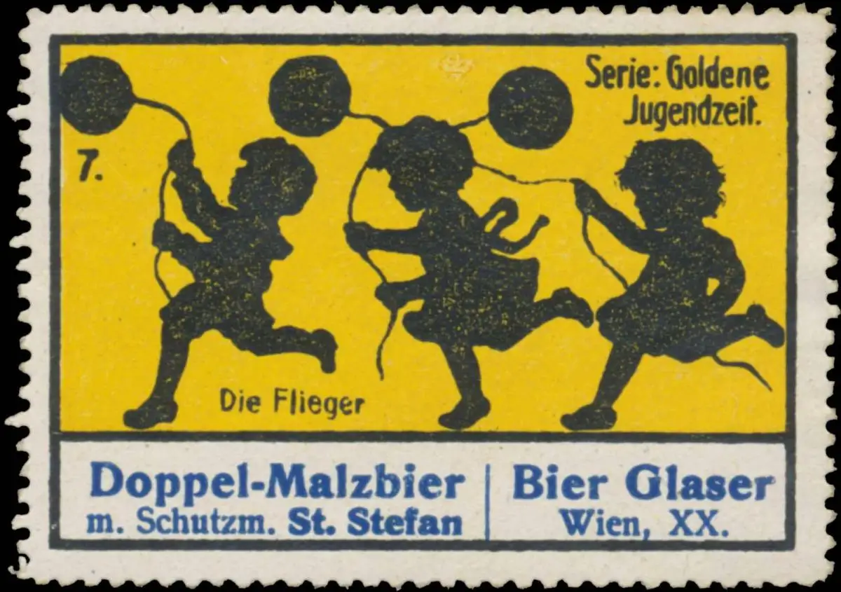 Doppel-Malzbier mit Schutzmarke St. Stefan, Serie: Goldene Jugendzeit, Kinder, Flugmarke, Bild 7 , Größe/Zustand: 4x6 , guter Zustand, Original alte Reklamemarke die seinerzeit für die Werbung benutzt wurde