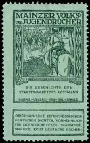 Herausgeber: Wilhelm Kotzde, Reihe: Mainzer Volks- und Jugendbücher, Größe/Zustand: 6x3 , guter Zustand, Original alte Reklamemarke die seinerzeit für die Werbung benutzt wurde
