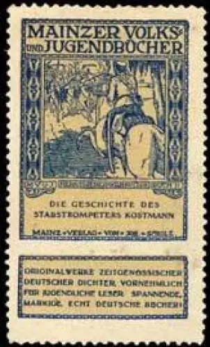 Herausgeber: Wilhelm Kotzde, Reihe: Mainzer Volks- und Jugendbücher, Größe/Zustand: 6x3 , leicht fleckig, Original alte Reklamemarke die seinerzeit für die Werbung benutzt wurde
