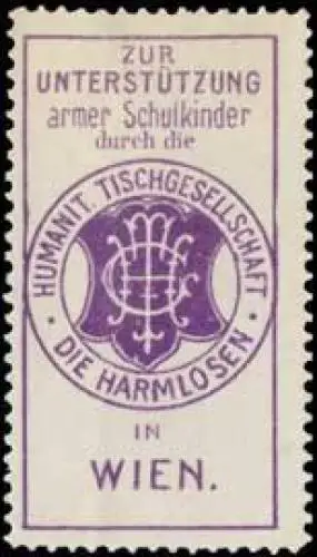 Spendenmarke zur Unterstützung armer Schulkinder durch die Humanit Tischgesellschaft: Die Harmlosen, Größe/Zustand: 5x3 , guter Zustand, Original alte Reklamemarke die seinerzeit für die Werbung benutzt wurde
