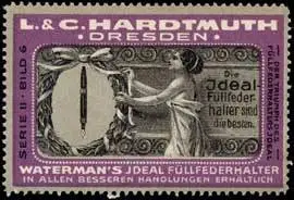 Der Triumpf des Füllfederhalters Ideal, Serie II, Bild 6, Watermans Ideal Füllfederhalter in allen besseren Handlungen erhältlich., Größe/Zustand: 4x6 , guter Zustand, Original alte Reklamemarke die seinerzeit für die Werbung benutzt wurde
