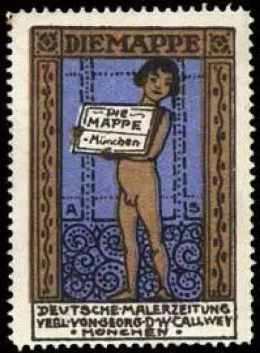 Deutsche Malerzeitung: Die Mappe, Monogramm, Größe/Zustand: 5x4 , guter Zustand, Original alte Reklamemarke die seinerzeit für die Werbung benutzt wurde