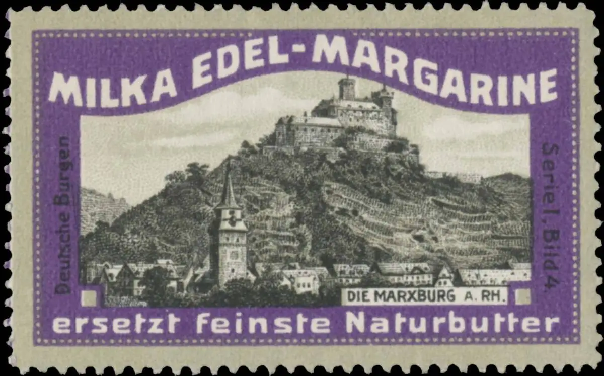 Serie I, Bild 4, Milka Edel-Margarine ersetzt feinste Naturbutter, Größe/Zustand: 3x5 , guter Zustand, Original alte Reklamemarke die seinerzeit für die Werbung benutzt wurde
