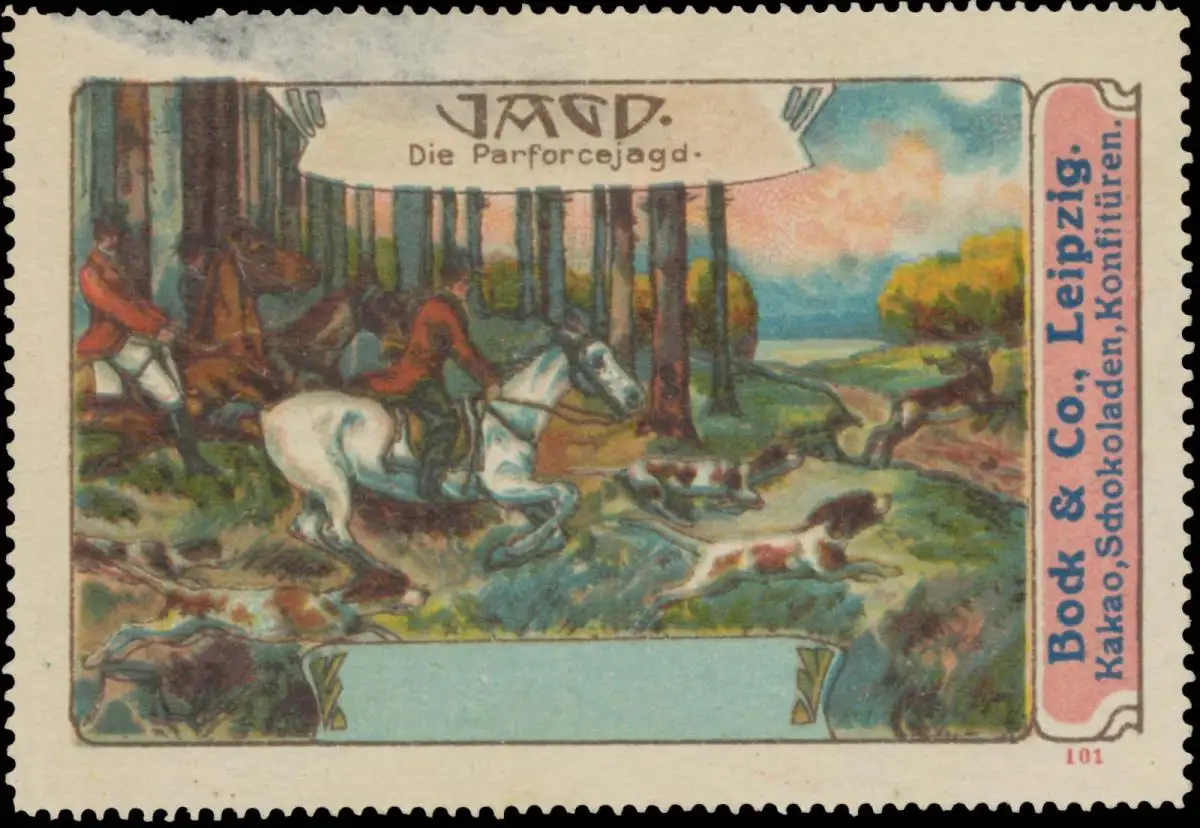 Jagd, Hund, Kakao, Schokolade, Konfitüren, Größe/Zustand: 5x8 , beschädigt, Original alte Reklamemarke die seinerzeit für die Werbung benutzt wurde