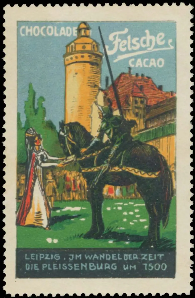 Leipzig im Wandel der Zeit, Chocolade Felsche Cacao, Schokolade, Größe/Zustand: 6x4 , guter Zustand, Original alte Reklamemarke die seinerzeit für die Werbung benutzt wurde
