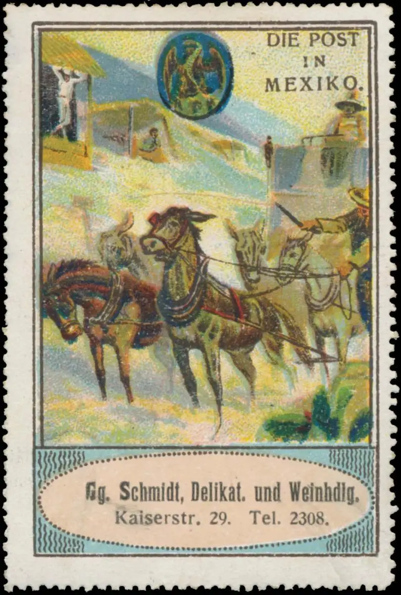 Postbote, Postkutsche , Größe/Zustand: 8x5 , guter Zustand, Original alte Reklamemarke die seinerzeit für die Werbung benutzt wurde