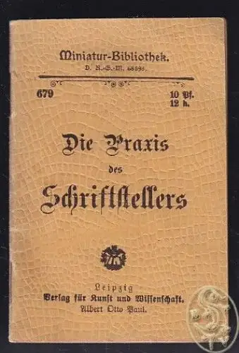 Lpz., Verlag für Kunst und Wissenschaft Albert Otto Paul [ca. 1910]. 16°. 39, 16 S. (Verzeichnis der Miniatur-Bibliothek). OBrosch. In gutem Zustand. - (Miniatur-Bibliothek Nr. 679)
