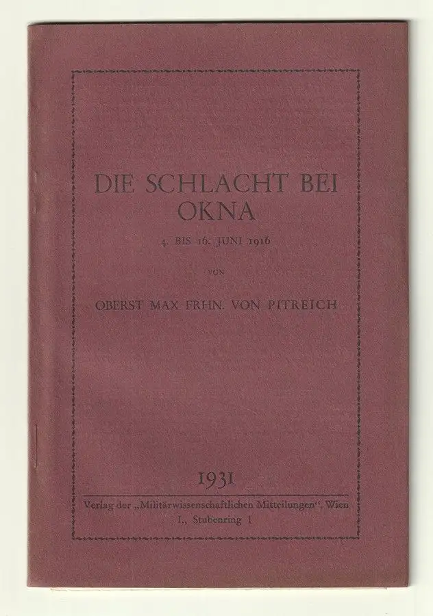 Wien, Vlg. d. `Militärwisssenschaftlichen Mitteilungen` 1931. gr.-8°. 50 S. Mit 1 gefalt. Plan. Okart. In tadellosem Zustand.