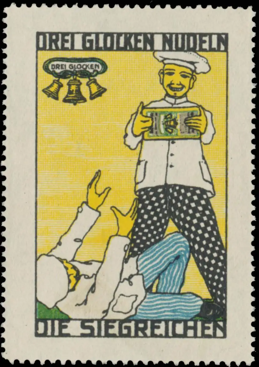 Drei Glocken Nudeln, Größe/Zustand: 6x4 , guter Zustand, Original alte Reklamemarke die seinerzeit für die Werbung benutzt wurde