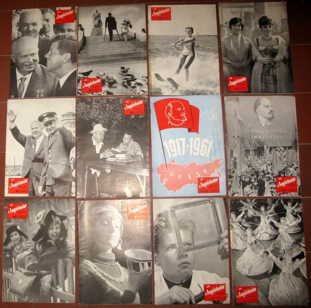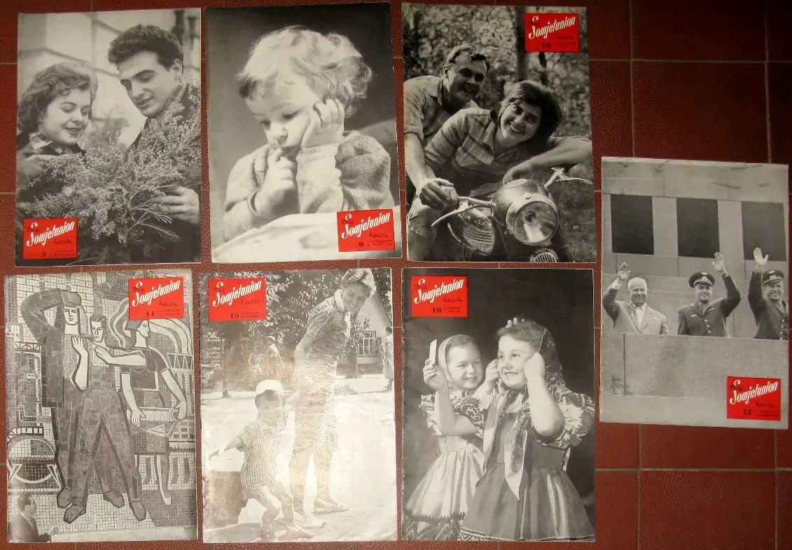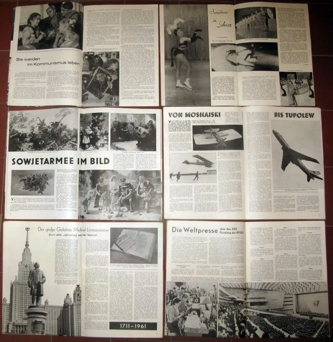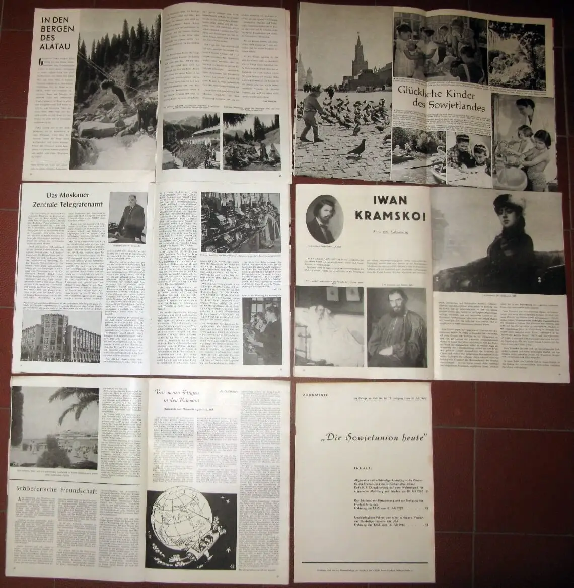 guter bis sehr guter Zustand, geringe Gebrauchs- und Alterungsspuren: Rücken teils etwas beschabt / gering abgenutzt - Umschläge teils gering verschmutzt - gelegentlich kleine Einrisse oder Eselsohren, Sie erhalten folgende Hefte geliefert: - 1961: 17, 18, 20, 22, 24, 25, 31/32, 33, 35 - 1962: 2-6, 13-17 - dazu einliegende Beilagen zu den Heften 4, 5 und 14 sowie 18, 24, 33 (mit Dokumenten, z. B. Reden) Inhaltsbeispiel (4 Hefte): - Gebt den Kindern den Frieden! - Ruinen mahnen - Minsk — die Stadt besiegte den Tod - Neue Maschinen für die Landwirtschaft - Dem XXII. Parteitag der KPdSU entgegen - Schulen mit Hort - In einer Moskauer Großküche - Stärker als der Tod - Maxim Gorki in Deutschland - Wie denken Sie über Ihre Generation und deren Probleme? - Antworten des Präsidenten und Premierministers der Republik Indonesien, Dr. Sukarno, auf Fragen eines Korrespondenten der Presseagentur „Nowosti" - Sportnotizen - Inhalt der Beilage - Memoranden der Sowjetregierung, die von N. S. Chrustschow dem Präsidenten der USA überreicht wurden - Rede N. S. Chrustschows im Moskauer Rundfunk und Fernsehen am 15. Juni - Das Treffen war nützlich - Der Siebenjahrplan macht unser Leben reicher und schöner - Ein Schiff fuhr durch den Taifun - Aus Wissenschaft und Technik - Das Sowjetische Rote Kreuz - Die neue Gestalt der Poschechonien-Dörfer - Architektur für die Bewohner des flachen Landes - Das sowjetische Gerichtswesen - Für die Ausdehnung des internationalen Handels - Elektronik an der Straßenkreuzung - Marguerite-Long-Pianistenwettbewerb in Paris - Die Straßen im Dschungel - Zum Beginn des neuen Schuljahres - Westliche Presseagenturen zum Flug der sowjetischen Kosmonauten - Ein neues Programm für medizinisch-biologische Untersuchungen im Kosmos - Der Onkologenkongreß in Moskau - Wir hoffen, bald selbst fliegen zu können - Wir nähern uns dem Sieg über den Krebs - Traktoren aus Tscheljabinsk - Zum Mond und zu den nahen Planeten - Über die Perspektiven der internationalen Zusammenarbeit bei der Weltraumforschung - Das „Geheimnis" der sowjetischen Erfolge - Mensch und Buch - Helsinki 1962 - Pelzauktion - „Made in USSR" - Rußlands treue Söhne - E. T. A. Hoffmann in der russischen Kritik - In den Bergen des Alatau - Junge Lokführer - Neue Briefmarken - Sport in der UdSSR - Einnahmen und Ausgaben einer Arbeiterfamilie - Notizen eines Touristen - Offener Brief eines Lehrers - Glückliche Kinder des Sowjetlandes - Die verkürzte Arbeitswoche in der UdSSR - Was wird den goldenen Löwen ersetzen? - Ein Film über das revolutionäre Kuba - Die große Chemie kommt auf die Felder, Softcover, ca. 21 x 29,5, je 36 Seiten mit zahlreichen Bildern
