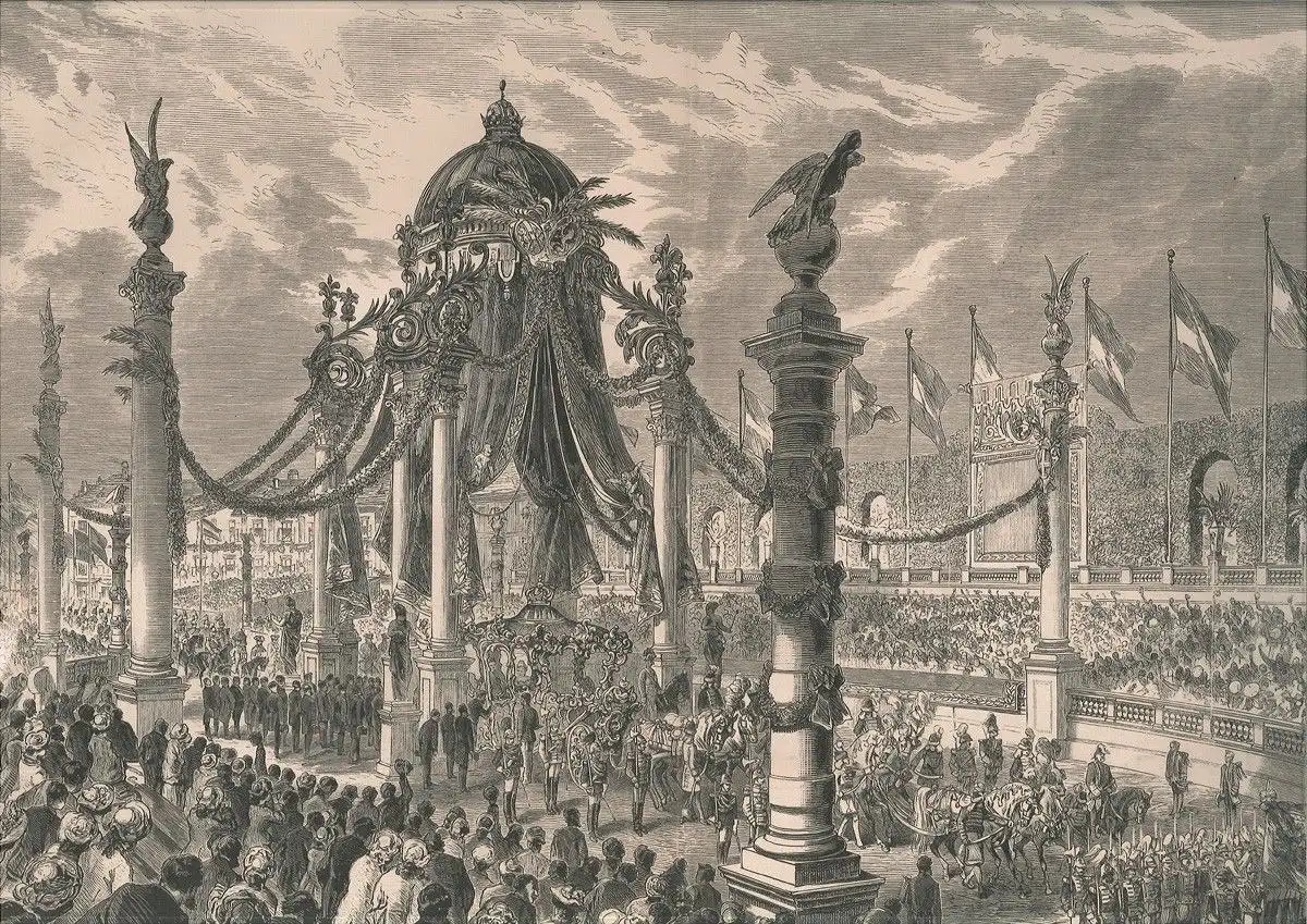 28. 5. 1881 Holzstich aus "Illusrtrirte Zeitung" 35 x 50 cm. Unter Passep. Faltstelle.