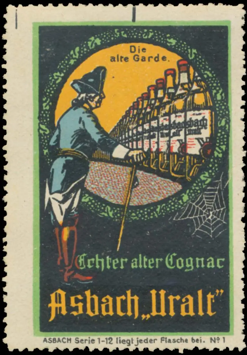 Asbach Uralt, echter alter Cognac, Größe/Zustand: 6x4 , guter Zustand, Original alte Reklamemarke die seinerzeit für die Werbung benutzt wurde