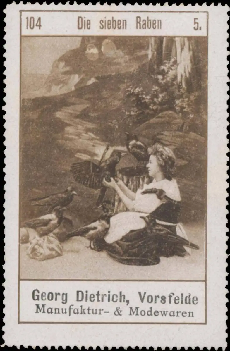 Serie 104, Bild 5, Märchen, Wolfsburg, Manufaktur- & Modewaren, Größe/Zustand: 7x4 , guter Zustand, Original alte Reklamemarke die seinerzeit für die Werbung benutzt wurde
