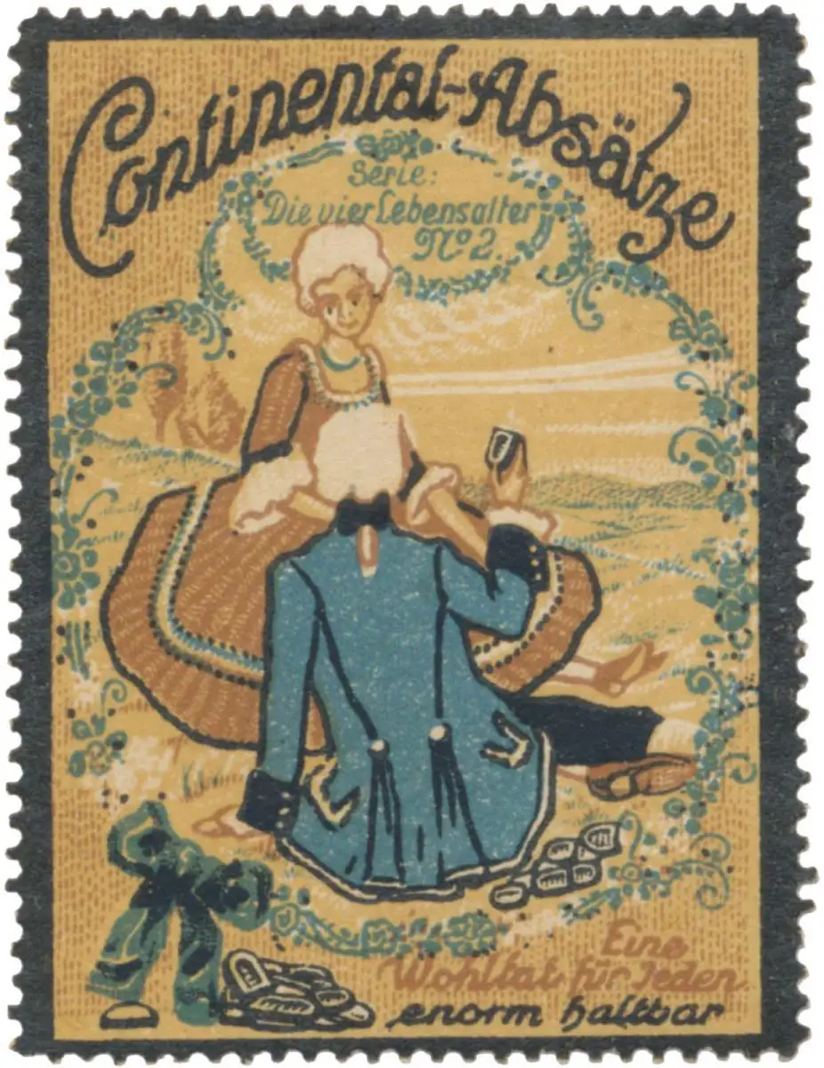 Jugend, 2, Continental-Absätze eine Wohltat für jeden, enorm haltbar, Größe/Zustand: 6x4 , guter Zustand, Original alte Reklamemarke die seinerzeit für die Werbung benutzt wurde