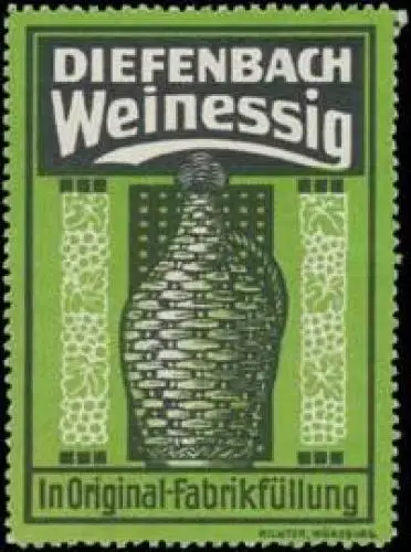 in Original-Fabrikabfüllung, Essig, Druck: Richter, Würzburg, Größe/Zustand: 6x4 , guter Zustand, Original alte Reklamemarke die seinerzeit für die Werbung benutzt wurde