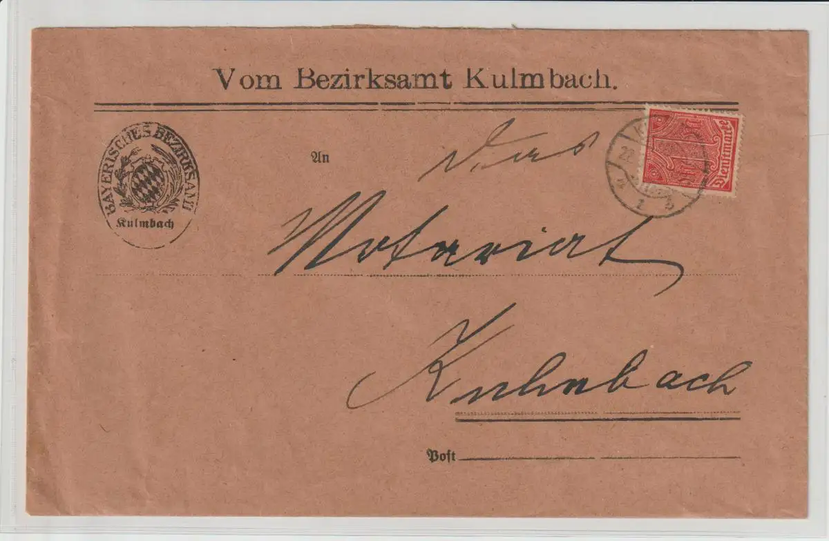 Ortsbrief Kulmbach, 22.07.22 portorichtig mit EF. Mi.-Nr. D 30, gute Bedarfserhaltung. Michelwert 80,00 €