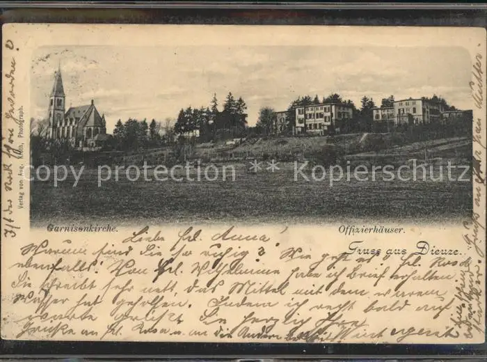 Dieuze Garnisonkirche Offizierhaeuser Dieuze postalisch gelaufen 1900 Erhaltung siehe scans Alte Ansichtskarte Postkarte Frierer