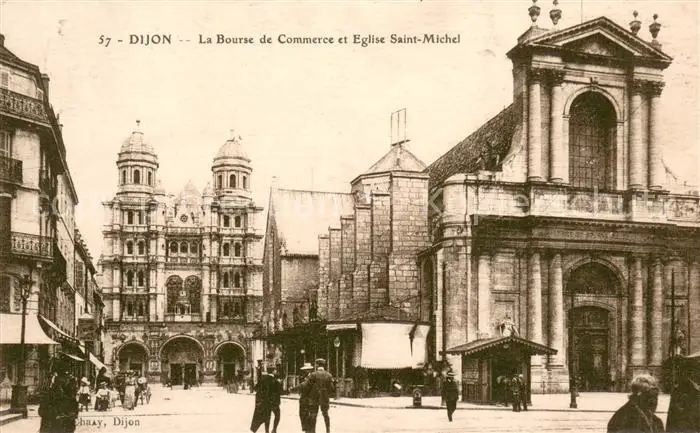 Dijon_21 La Bourse de Commerce Eglise Saint Michel postalisch gelaufen 1918 Erhaltung siehe scans [FriedD77] Frierer