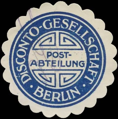 Discontogesellschaft, Größe/Zustand: 5 , fleckig, Original alte Reklamemarke die seinerzeit für die Werbung benutzt wurde