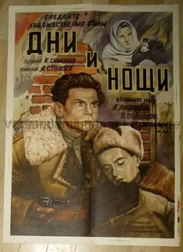 Filmplakat / Druckfahne (unbeschnittenes Exemplar, vielleicht Testdruck ??) dieses Filmes (dt. Titel: Tage und Nächte; 1945) Regie: Alexander Stolper, nach einem Roman von Konstantin Simonov hergestellt um 1966 in der Druckerei "Völkerfreundschaft" in Dresden