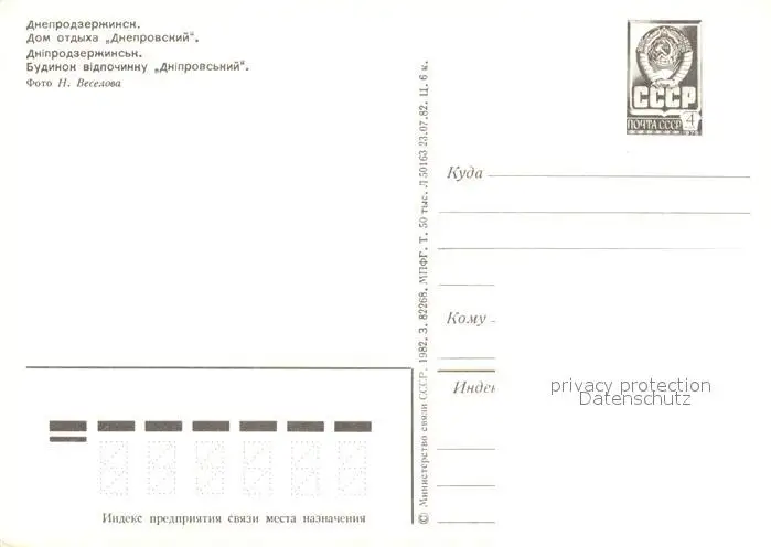 Dniprodserschynsk_Dneprodzerzhinsk postalisch nicht gelaufen nach 1965 Erhaltung siehe scans [DarjaD84] DarjID84