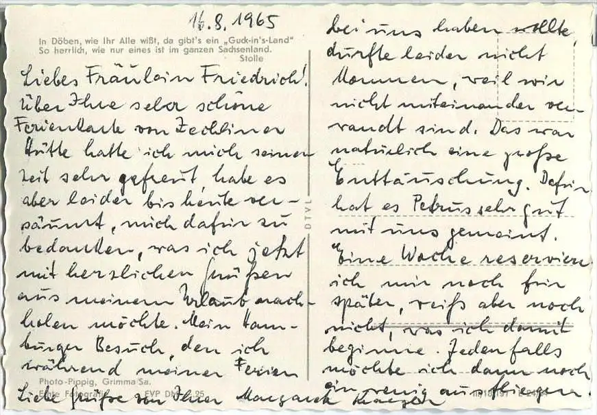 Döben bei Grimma - Rückseite beschrieben 1965 (E35448) *