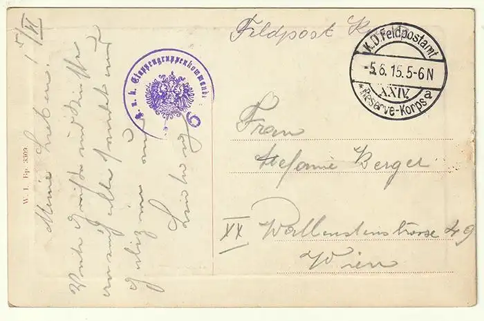 Bemerkungen: Feldpost gelaufen 1915. - Wien.