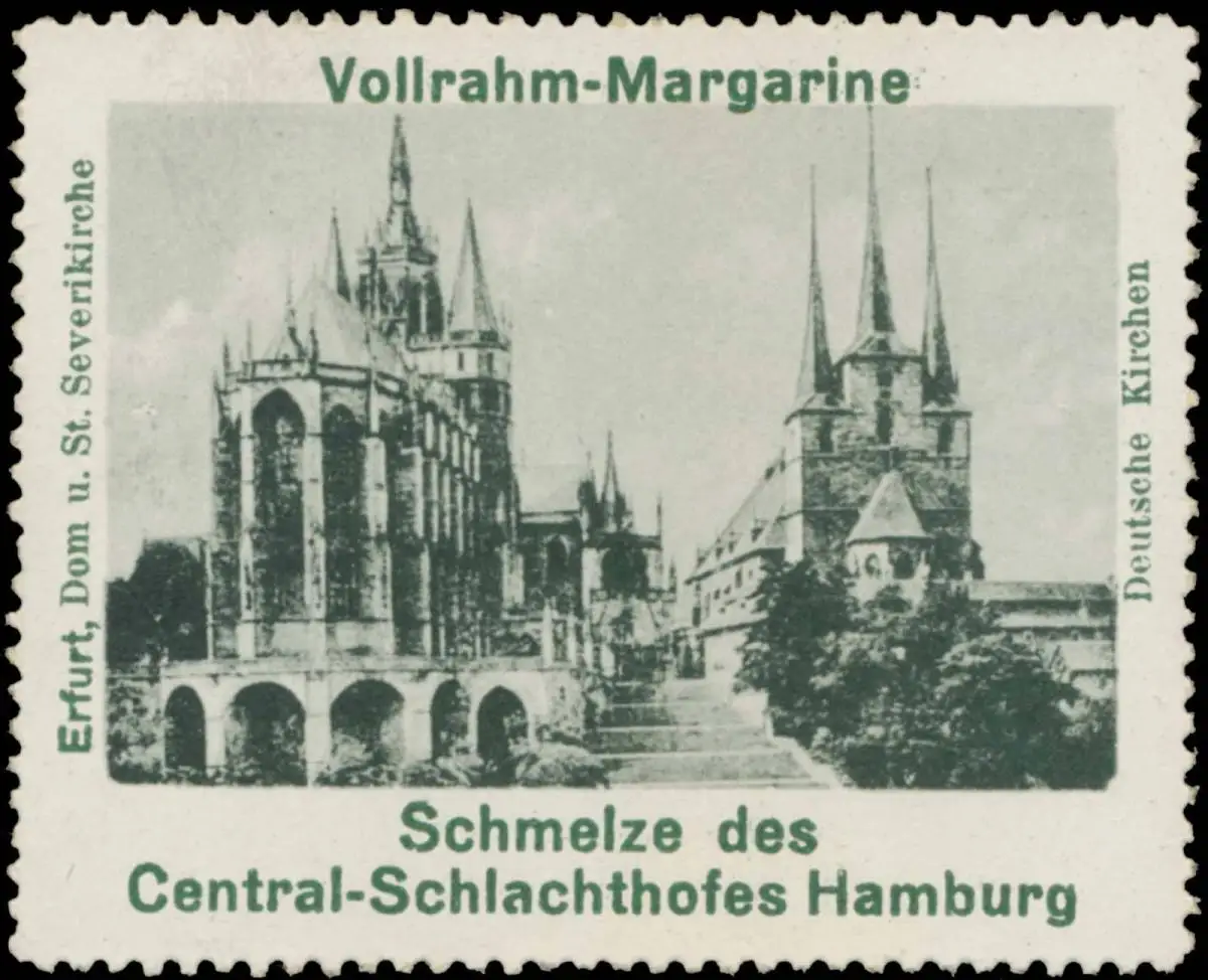 Deutsche Kirchen, Vollrahm-Margarine, Schmelze des Central-Schlachthofes , Größe/Zustand: 5x6 , guter Zustand, Original alte Reklamemarke die seinerzeit für die Werbung benutzt wurde