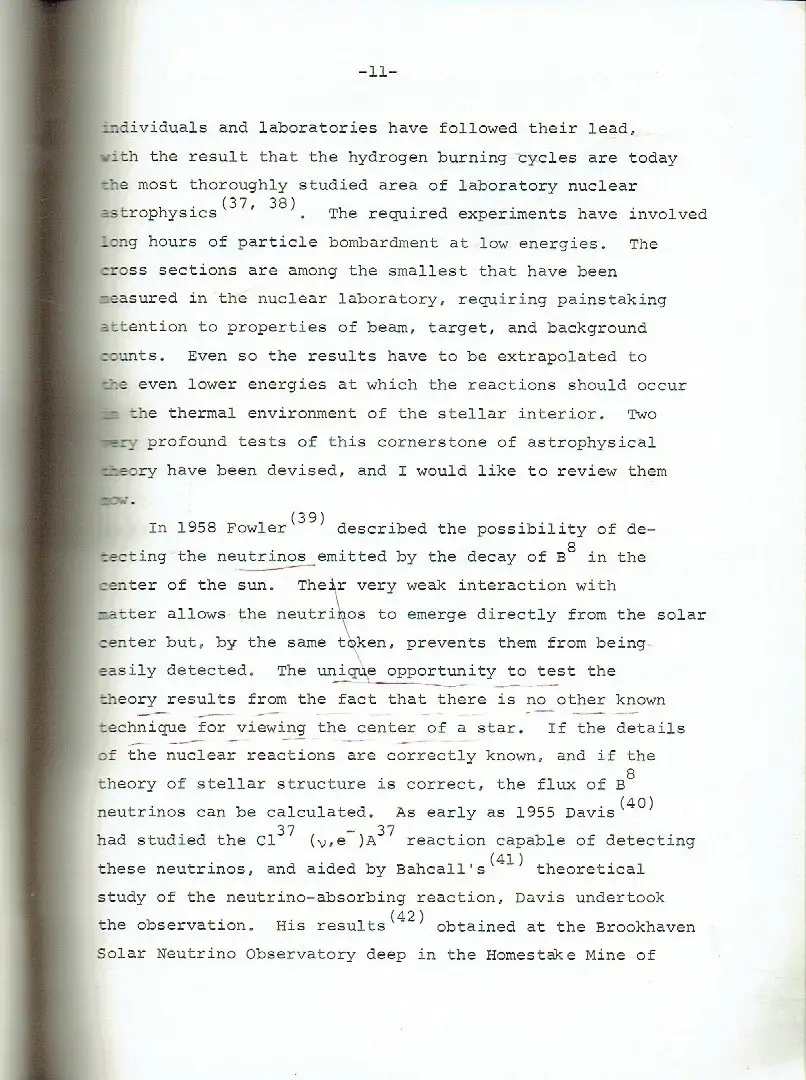 guter Zustand, Gebrauchs- und Alterungsspuren: Umschlag teils vergilbt - Umschlag und Seiten teils etwas eselsohrig, Umschlag an den Ecken auch geknickt - Seiten teils mit kleinen Randblessuren - eine Seite an der oberen Ecke defekt - Seiten überwiegend sauber und ordentlich, mit zahlreichen farbigen Textmarkierungen, Donald Delbert Clayton (born March 18, 1935) is an American astrophysicist whose most visible achievement was the prediction from nucleosynthesis theory that supernovae are intensely radioactive. That earned Clayton the NASA Exceptional Scientific Achievement Medal (1992) for “theoretical astrophysics related to the formation of (chemical) elements in the explosions of stars and to the observable products of these explosions”. Supernovae thereafter became the most important stellar events in astronomy owing to their profoundly radioactive nature. Not only did Clayton discover radioactive nucleosynthesis during explosive silicon burning in stars but he also predicted a new type of astronomy based on it, namely the associated gamma-ray line radiation emitted by matter ejected from supernovae. That paper was selected as one of the fifty most influential papers in astronomy during the twentieth century for the Centennial Volume of the American Astronomical Society. He gathered support from influential astronomers and physicists for a new NASA budget item for a gamma-ray-observatory satellite, achieving successful funding for Compton Gamma Ray Observatory. With his focus on radioactive supernova gas Clayton discovered a new chemical pathway causing carbon dust to condense there by a process that is activated by the radioactivity.Clayton's foundational ideas for five original subfields of astrophysics are detailed in Section 5 below. They are: nucleosynthesis, the assembly within stars of the atomic nuclei of the common chemical elements by nuclear reactions occurring therein; astronomical detection of gamma-ray lines emitted by radioactive atoms created and ejected by supernovae; mathematical models of the growth over time of the interstellar abundances of radioactive atoms; predictions of the existence of interstellar cosmic dust grains from individual stars—individual chunks of long-dead stars. He named those stardust, each containing isotopically identifiable radioactive atoms of the host stars; predictions of the condensation of solid grains of pure carbon within hot, oxygen-dominated radioactive supernova gases. Clayton launched these original ideas from research positions at California Institute of Technology, Rice University, Cambridge University (England), Max-Plank Institute for Nuclear Physics (Germany), Durham University (England) and Clemson University during an international academic career spanning six decades.Clayton also authored four books for the public: a novel, The Joshua Factor (1985), is a parable of the origin of mankind utilizing the mystery of solar neutrinos; a science autobiography, Catch a Falling Star; a mid-career memoir The Dark Night Sky, of cultural interest owing to Clayton's conception of it in 1970 as layout for a movie: 245–249  with Italian filmmaker Roberto Rossellini about growing awareness during a cosmological life (See Personal below); Handbook of Isotopes in the Cosmos (Cambridge Univ. Press, 2003), describing in prose the nuclear origin of each isotope of our natural elements and important evidence supporting each nuclear origin. Clayton has also published on the web Photo Archive for the History of Nuclear Astrophysics from his personal photographs and his researched captions recording photographic history during his research in nuclear astrophysics, a contribution to the history of science. (Wikipedia), Halbleinen, ca. 21,5 x 27,5, 29 Seiten mit 6 Diagrammen