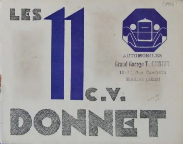 Donnet 11 CV Modellprogramm 1926 Automobilprospekt (2771)