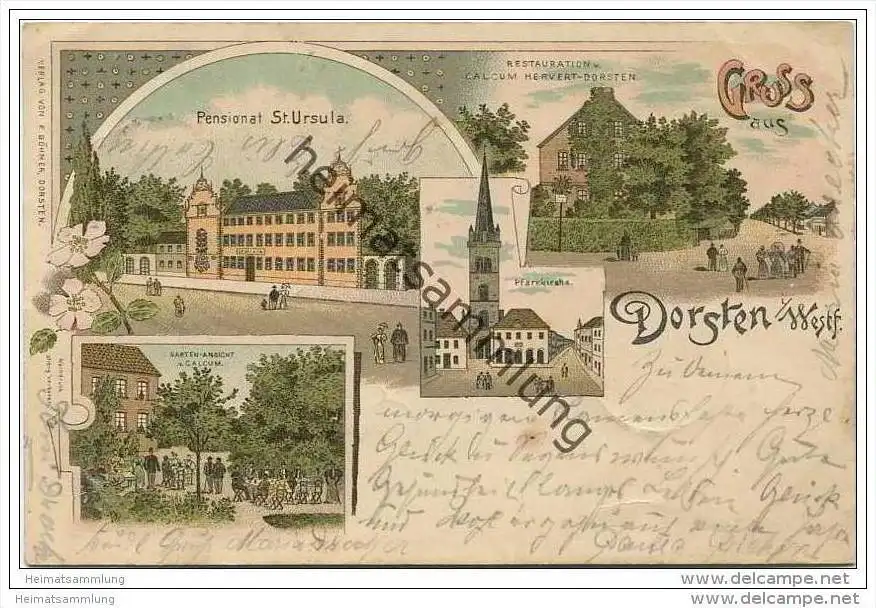 Dorsten - Pensionat St. Ursula - Restauration Calcum Hervert-Dorsten - Pfarrkirche - Verlag E. Böhmer Dorsten - leichte Gebrauchsspuren (E11314) gel. 1898