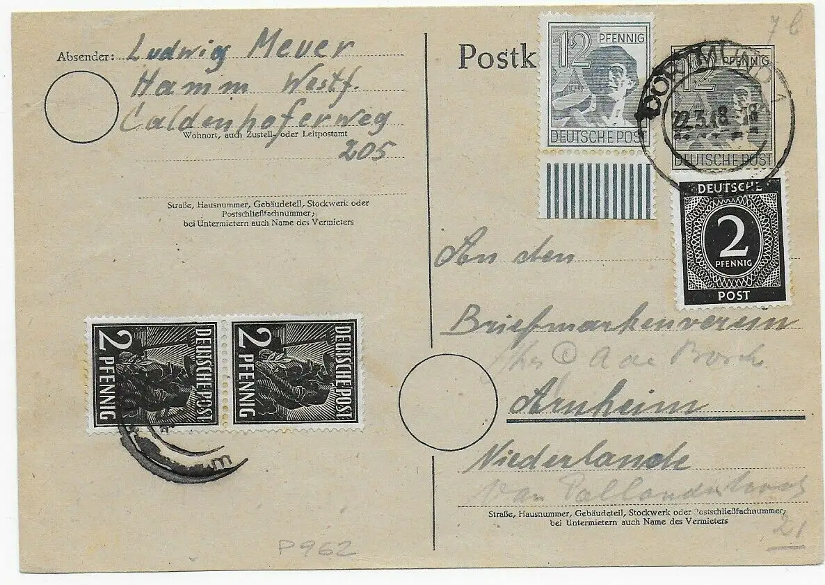Dortmund 1948 nach Arnheim/NL
