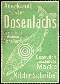 Anerkannt bester Dosenlachs, geräuchert in dünnen Scheiben. Mit der Scheibe. Fisch, Lachs, Größe/Zustand: 5x4 , leicht fleckig, Original alte Reklamemarke die seinerzeit für die Werbung benutzt wurde