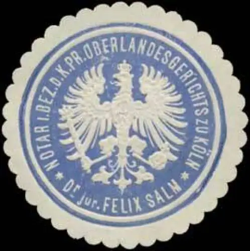 im Bezirk des K.Pr. Oberlandesgerichts zu Köln, blau, weiß, geprägt, Größe/Zustand: 4 , guter Zustand, Original Verschluss-Siegelmarke aus Papier welche früher von Behörden, Firmen etc. zum Versiegeln der Briefe benutzt wurden