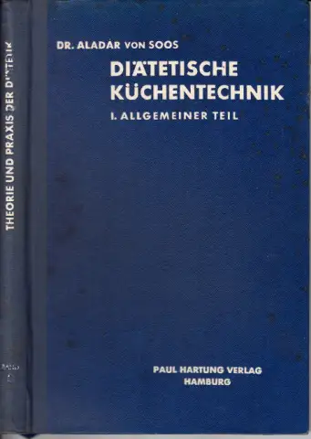 Diätetische Küchentechnik; Theorie und Praxis der Diätetik; Aladar von Soos; Kochbuch
