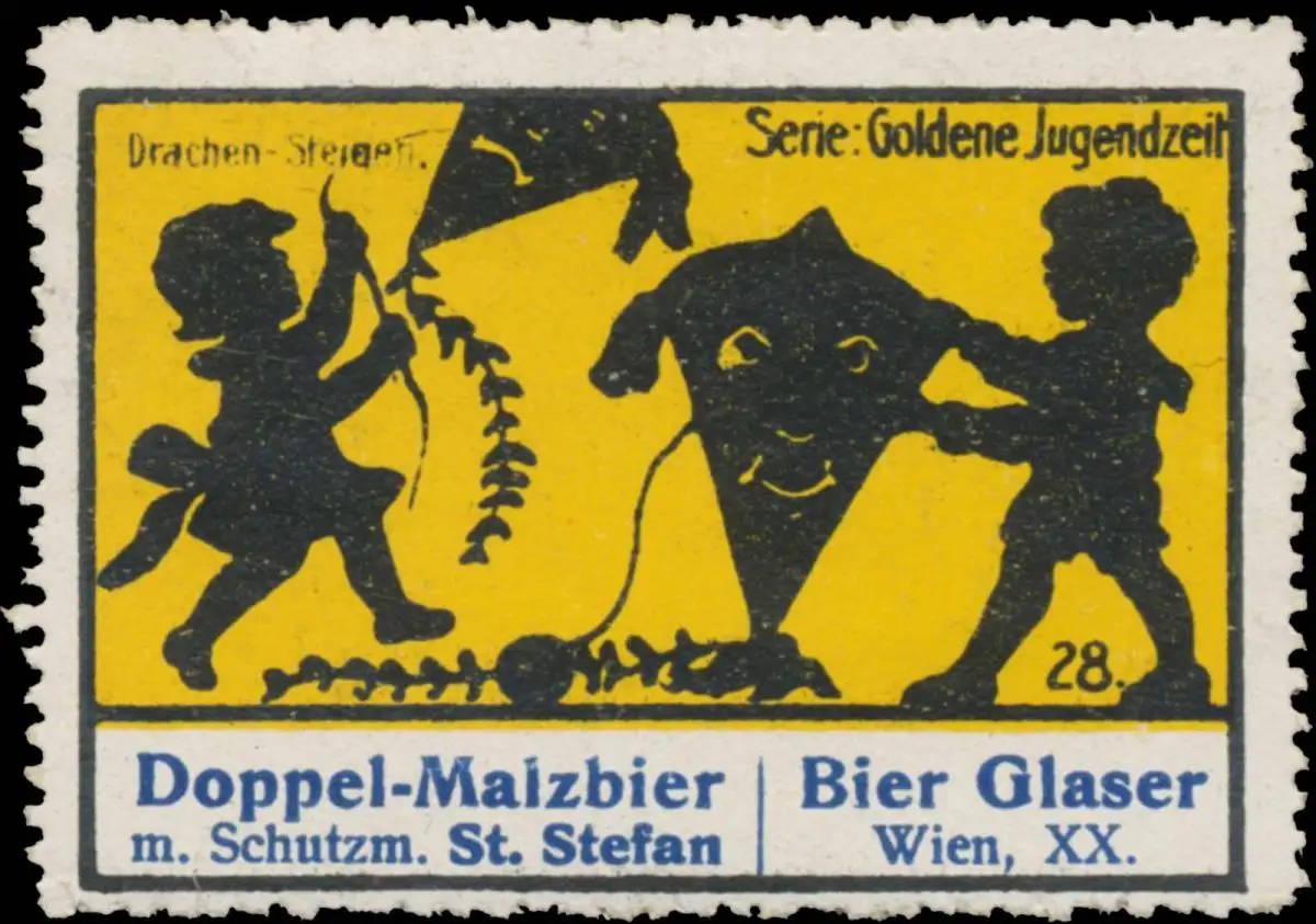 Doppel-Malzbier mit Schutzmarke St. Stefan, Serie: Goldene Jugendzeit, Kinder, Bild 28 , Größe/Zustand: 4x6 , guter Zustand, Original alte Reklamemarke die seinerzeit für die Werbung benutzt wurde