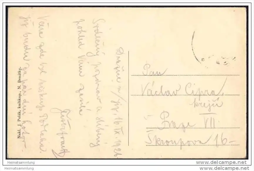 Drazice - Benatky nad Jizerou - Benatek - Nakl. J. Polak knihkup. N. Benatky - Briefmarke entfernt (E3913) gel. 1926