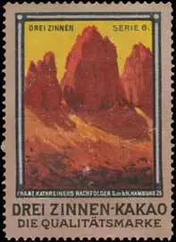 Drei Zinnen-Kakao die Qualitätsmarke, Berg-Serie 8, Größe/Zustand: 5x4 , guter Zustand, Original alte Reklamemarke die seinerzeit für die Werbung benutzt wurde