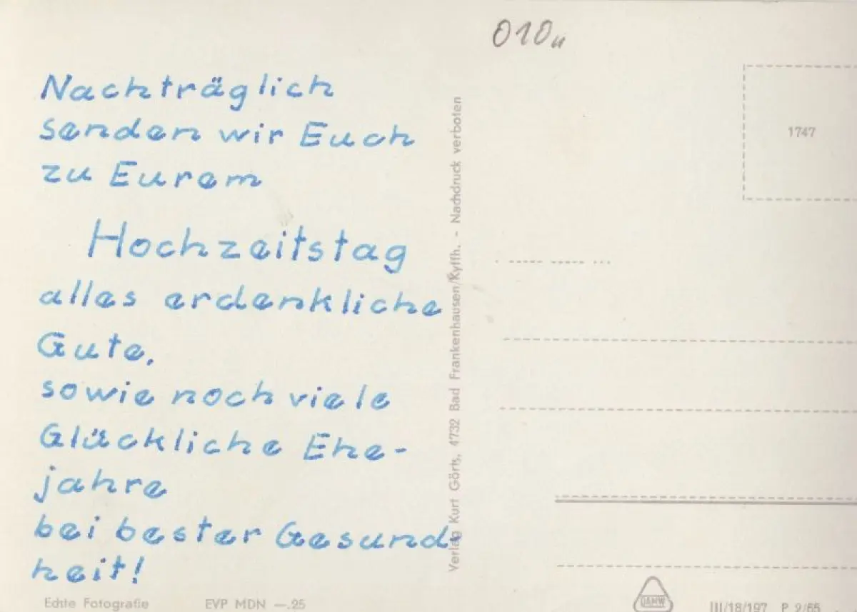 Ich hatte die Rechnung sofort als Vorkasse bezahlt, aber keine Zusendung der Karte erhalten. Trotz Nachfrage keine Rückmeldung bzw. Erklärung. Da es sich zum Glück nur um 1,70 € handelt, ist die Sache für mich erledigt, ärgerlich, aber zu verkraften. Mit den drei anderen Karten, die ich bestellt hatte, hat alles wunderbar geklappt.