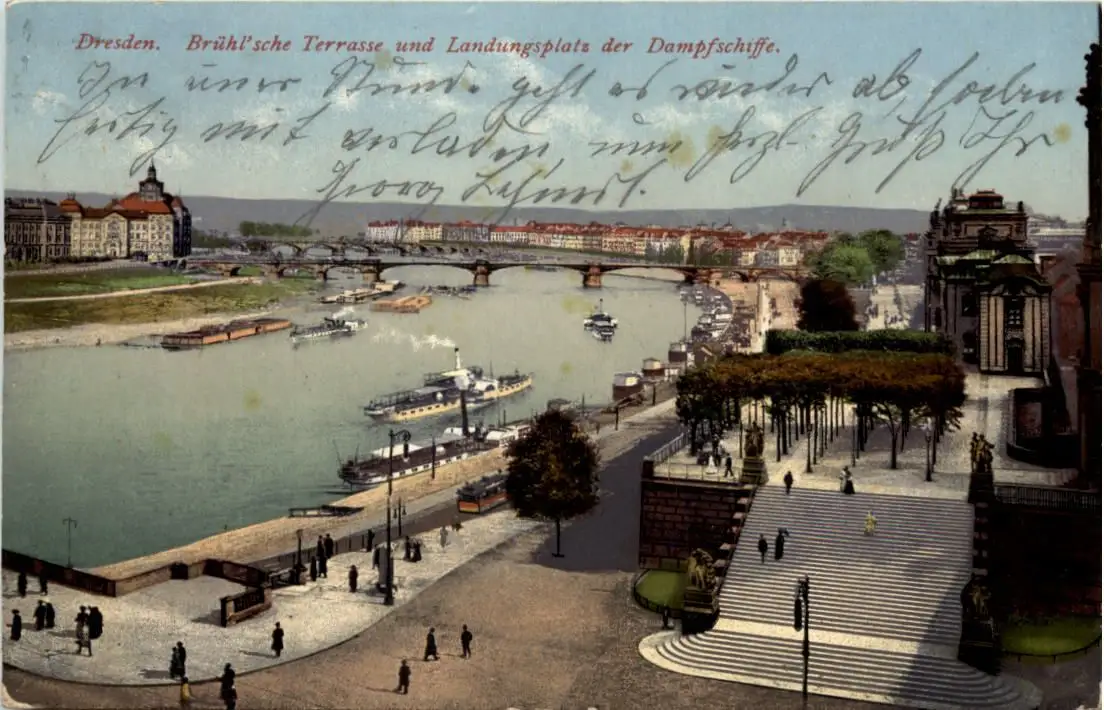 Dresden, Brühlsche Terrasse und Landungsplatz der Danpfschiffe -532702
