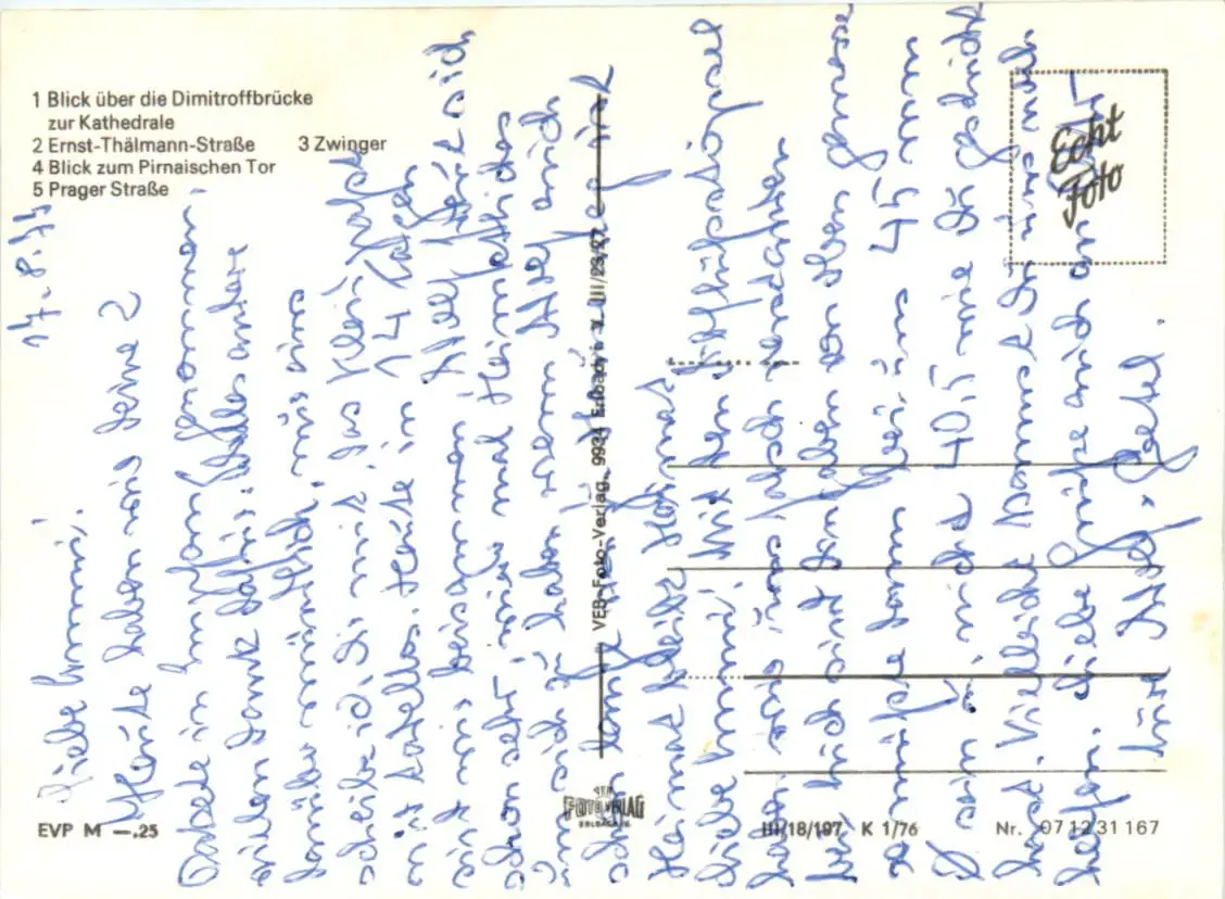 Der Zustand der Ansichtskarte war wie beschrieben und der Preis akzeptabel. Der Versand erfolgte leider erst nach knapp einer Woche nach Aufforderung und Androhung von Konsequenzen. Deshalb werde ich hier nicht mehr kaufen