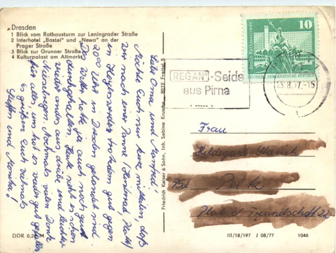 Der Zustand der Ansichtskarte war wie beschrieben und der Preis akzeptabel. Der Versand erfolgte leider erst nach knapp einer Woche nach Aufforderung und Androhung von Konsequenzen. Deshalb werde ich hier nicht mehr kaufen