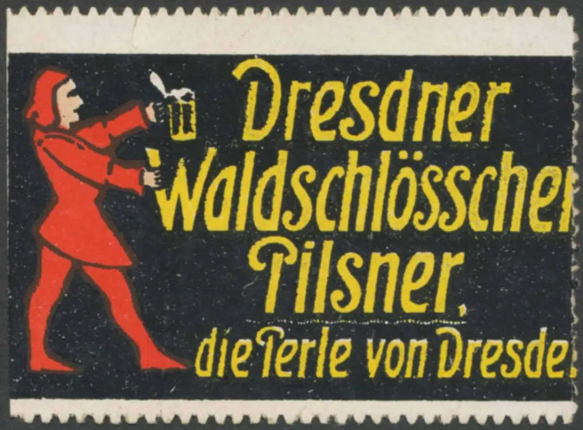 die Perle von Dresden, schwarz, Bier, Größe/Zustand: 4x5 , guter Zustand, Original alte Reklamemarke die seinerzeit für die Werbung benutzt wurde
