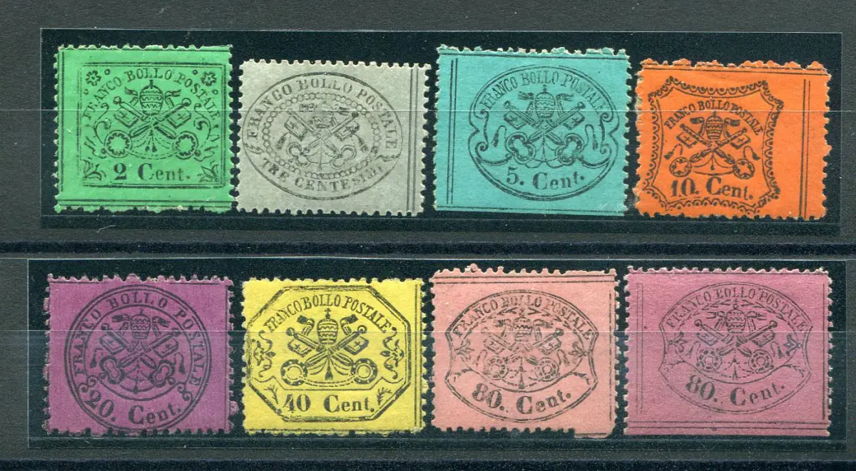 Dritte Serienausgabe mit acht gezackten Werten Mit Linguella-Spur - Päpstlich - Dritte Serienausgabe mit acht gezackten Werten in den gängigsten Farben - Kat. 490 Code 12/8