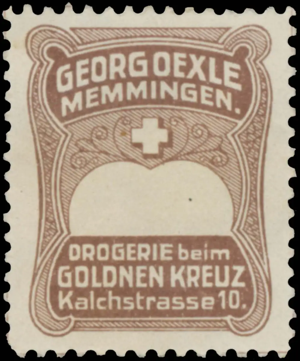 Georg Oexle, Kalchstraße 10, braun, Größe/Zustand: 5x4 , guter Zustand, Original alte Reklamemarke die seinerzeit für die Werbung benutzt wurde