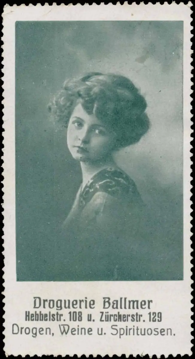 Drogen, Weine und Spirituosen, Drogerie, Hebbelstr. 108, Zürcherstr. 129, Kind, Größe/Zustand: 8x4 , leicht fleckig, Original alte Reklamemarke die seinerzeit für die Werbung benutzt wurde