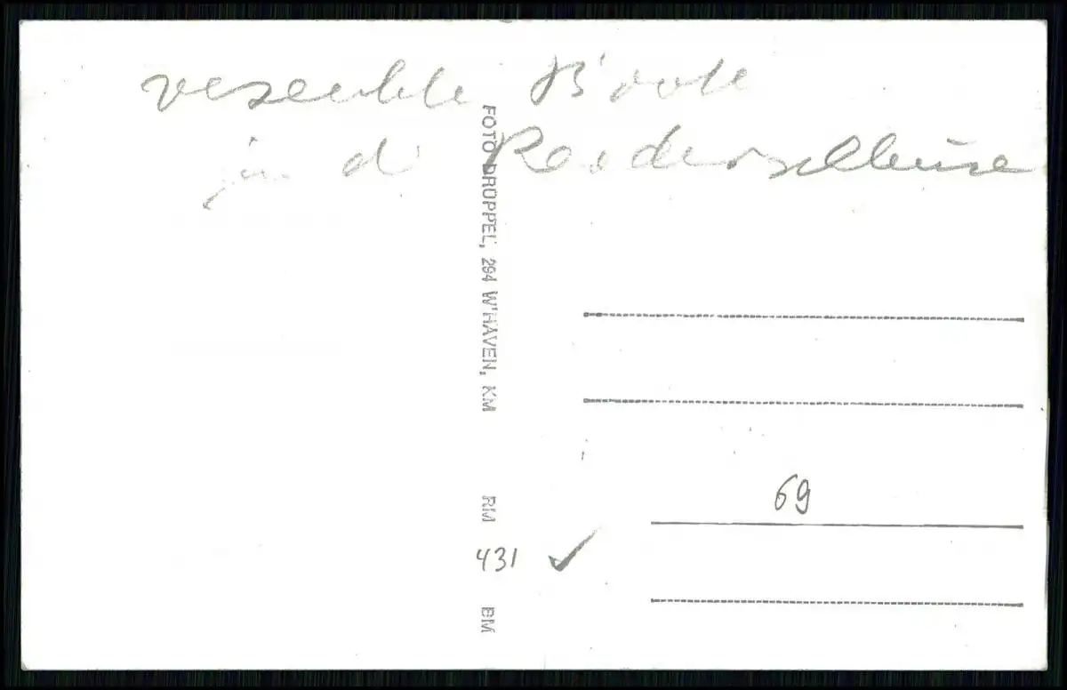 Auf der Rückseite befindet sich eine Beschriftung sowie der Aufdruck 'Foto Drüppel, Wilhelmshaven'.