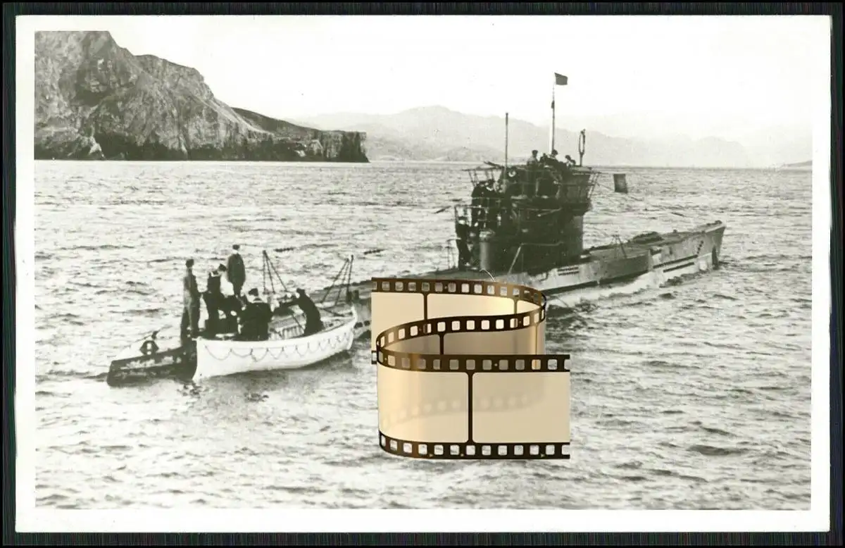Drüppel Foto AK U-Boot Unterseeboot U 1305 Übergabe kleines Boot Ware oder ä.